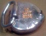 | Cast aluminum buckle with inlaid brass lettering Sold |