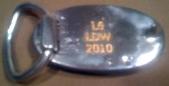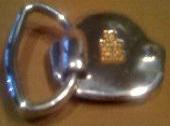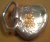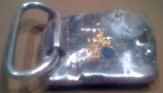 | Cast aluminum buckle with inlaid brass lettering Sold |